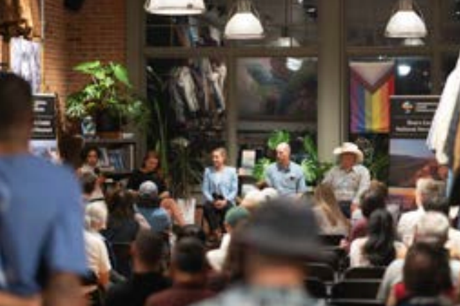 We partnered with Patagonia to host a widely attended public forum featuring a curated panel that highlighted the breadth and depth of support for public lands protection. Moderated by Chris Hill, speakers were Representative Melanie Stansbury (NM), Caroline Gleich (professional ski mountaineer and activist), Ryan Callaghan (President and CEO of Backcountry Hunters and Anglers), and Carleton Bowekaty (Zuni Tribe and Policy Director at Bears Ear Partnership). Together, they explored how everyone has a role to play in safeguarding our nation’s natural resources, inspiring attendees to take action in their communities.